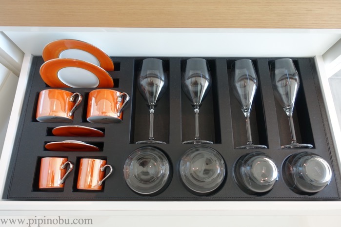 扉を開けると、こちらのように、冷蔵庫やポット、ミニバーなどが現れます。クローゼットの中、しかも上段に冷蔵庫があるのって、画期的ですよね。