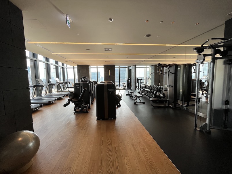 ジム(フィットネス)もホテルの33階に位置しており(プールのちょうど隣のエリア)、34階で受付を済ませてからこちらは階段で33階にアクセスする形になります。