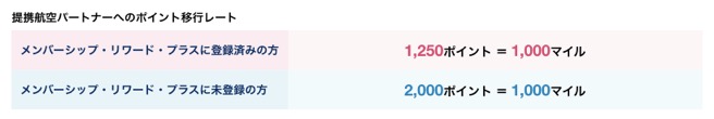 「メンバーシップ・リワード・プラス」に登録すると、貯めたポイントの、提携航空パートナーへのマイル移行レートがアップします。