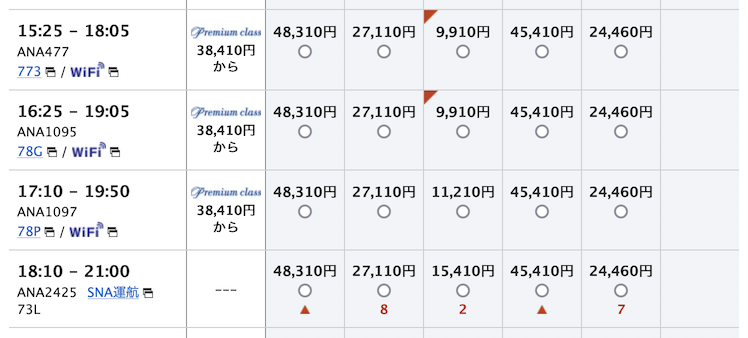こちらは、10月5日(水)の「東京(羽田)-沖縄(那覇)」の価格例(片道)です。