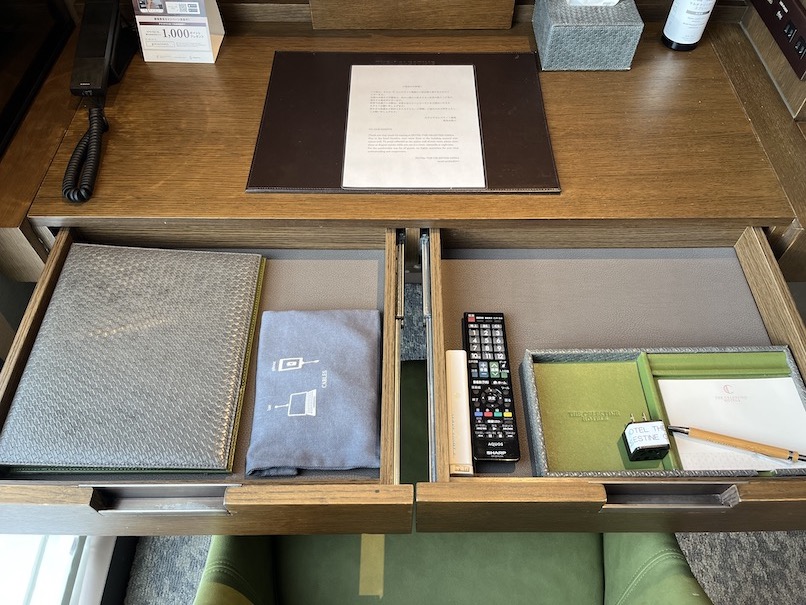 デスクの引き出しの中には、LANケーブルやスマホの充電ケーブルなども用意されていました。