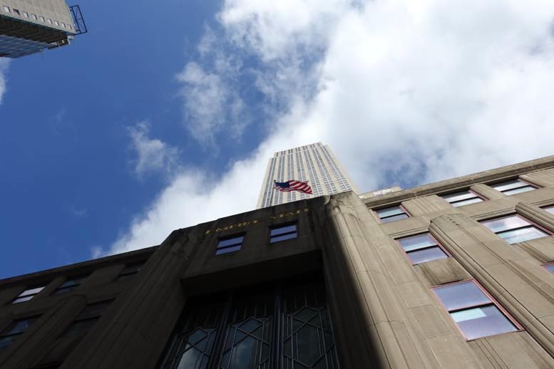 「エンパイア・ステート・ビル」の外観はこんな感じです。高さ443.2メートル、地上102階建ての超高層ビルということだけあって、見上げても頂上が見えないほどの高さです。