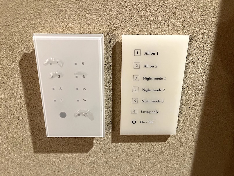 照明もハイテクで登録されている番号セットでコントロールできるようになっていました。「1」でオールオン、「3」でムーディー、といった感じです。とても便利でした。