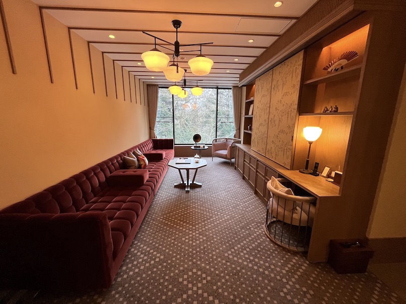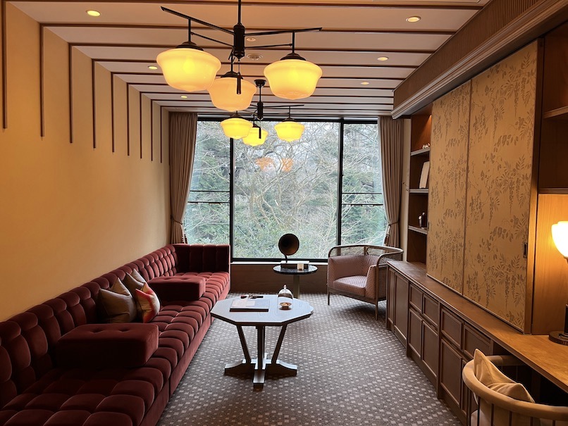 こちらのホテルは全室スイートでプライベート温泉付きの豪華な仕様となっています。客室は広々としており大正ロマンを感じさせるレトロな内装も和洋折衷で素敵ですね。