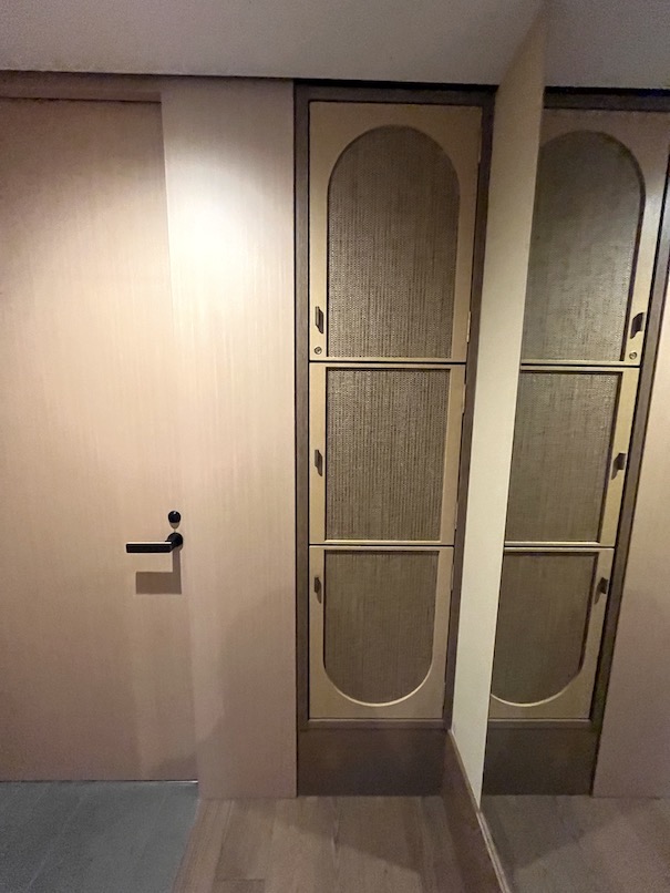 そして、玄関脇にはバトラーボックスも用意されていました。濡れたタオルや使用済みのグラスなどを入れておくと定期的な巡回の際に綺麗なものと交換していただけます。