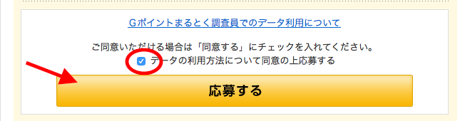 条件を確認後、問題なければ、「データの利用方法について同意の上応募する」にチェックをつけ、「応募する」ボタンをクリックします。