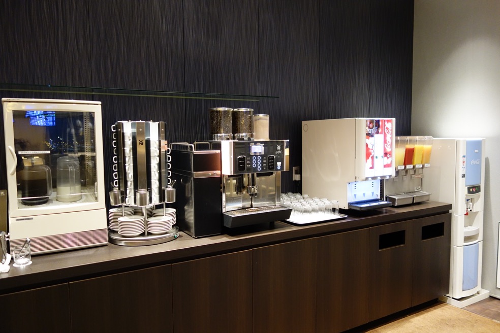 「スカイラウンジ」で提供されているのでは、ソフトドリンクのみです。こちらの写真はコーヒーメーカーですね。なかなか新しくて良いものです。