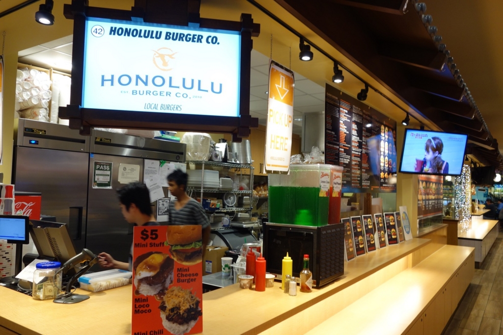 日本をテーマにしたフードコートなので、和をイメージさせるお店ばかりと思いきや、唐突に洋風なお店も混じっています。こちらは、ハンバーガーで有名な「ホノルルバーガー」さん。