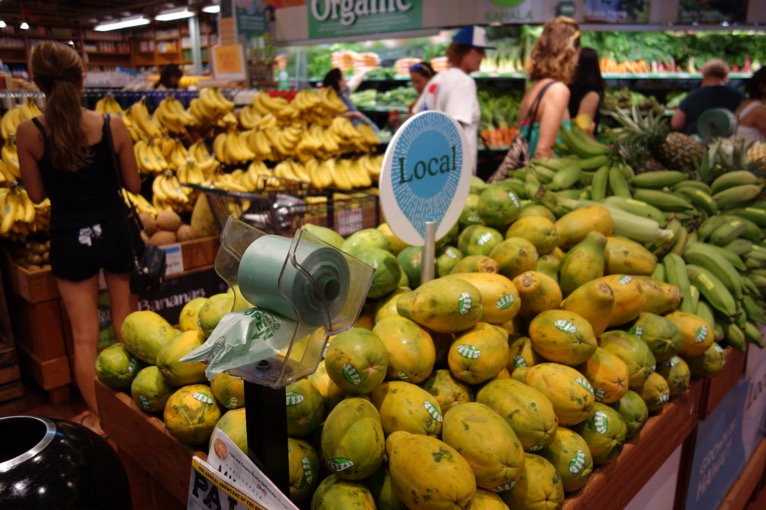ホールフーズ カハラ店:エコバッグの様子(タグアロハとのコラボ)
