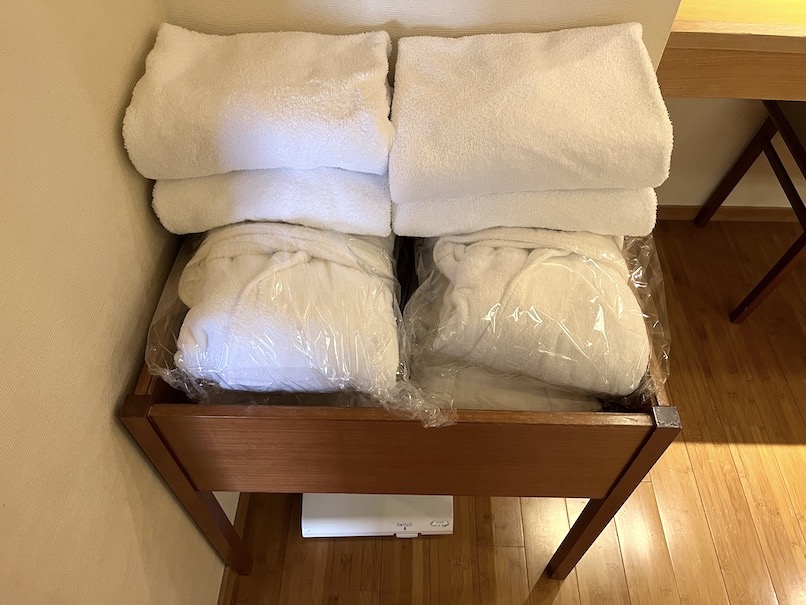 タオルとバスローブも4人分ということで、2人で利用するには十分すぎるほどでした。