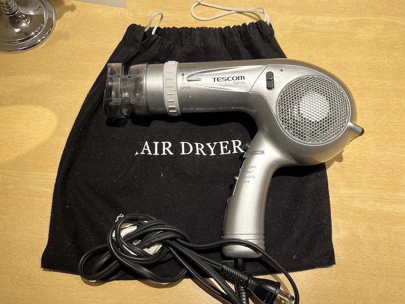 ドライヤーは「TESCOM(テスコム)」でした。今時からするとちょっと時代を感じさせる代物ですね。