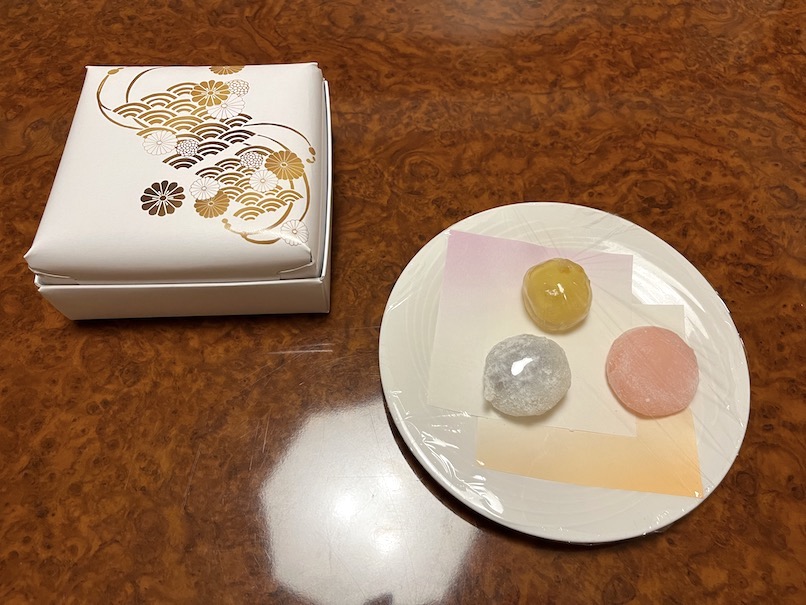 チェックイン後しばらくするとウェルカムギフトが届けられました。この日は「和菓子」と「洋菓子」の提供となっていました。