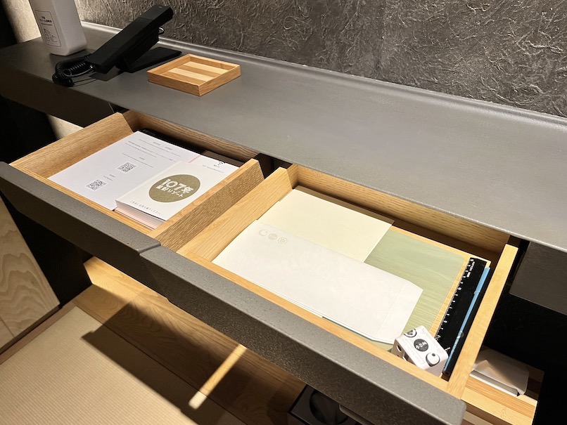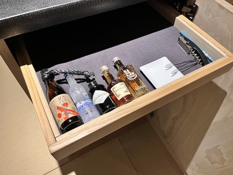 一体として利用すれば客室をより広く感じることができますし、自由にドリンクやお茶菓子をいただけることで自宅にいるようなリラックスを感じることができます。