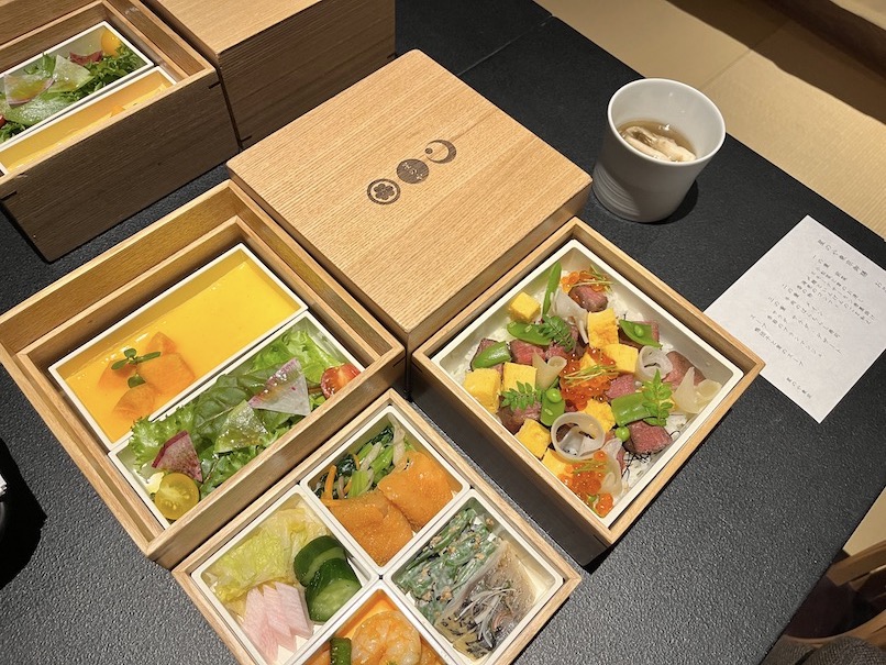 特にメインの「牛肉のばらちらし寿司」はお肉がジューシーでやらかく、いくらが贅沢さも演出していて絶品でした。