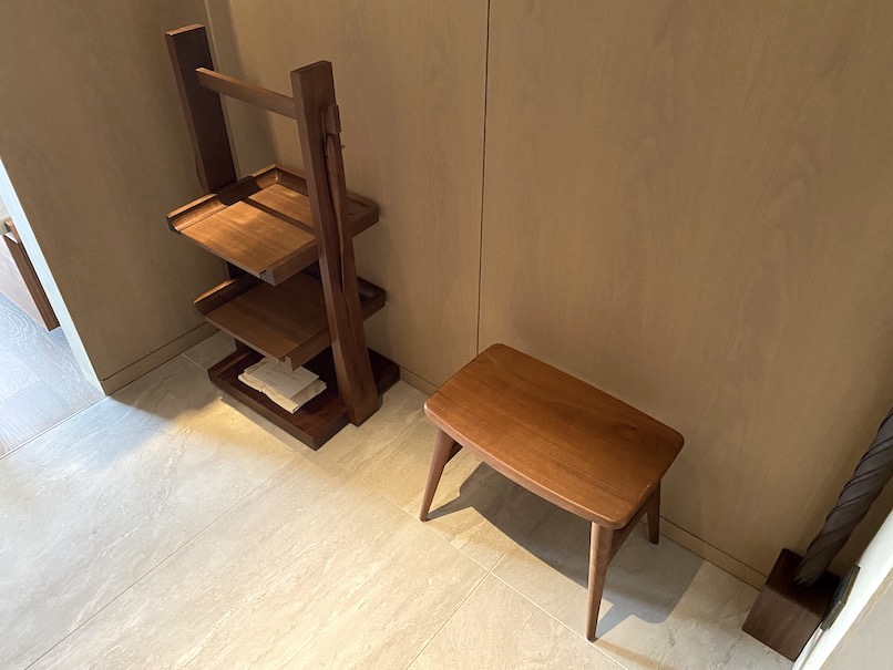 また、ロビーの一角にはライブラリーや茶の湯用のスペースも配置されています。こちらはライブラリーの写真です。間接照明と本、オブジェの配置が絶妙でモダンでありながら落ち着ける空間になっていますね。どこを撮っても絵になります。