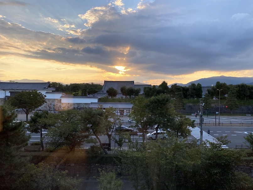 客室からの眺望はこんな感じです。大通りを一本挟んでその先に二条城の姿を捉えることができます。