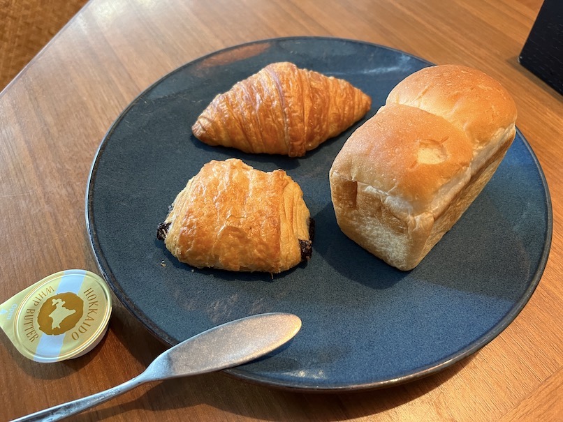 こちらはクロワッサンとチョコレートクロワッサン、マフィン、ミルクパン、などなど。トースターとトーストも用意されており、好みに応じて温めていただくこともできます。