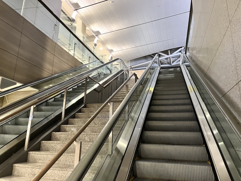 しばらく進むと左手に「Transfer Lounge」というサインとともに3階から4階へと上がるエスカレーターおよびエレベーターがあります。