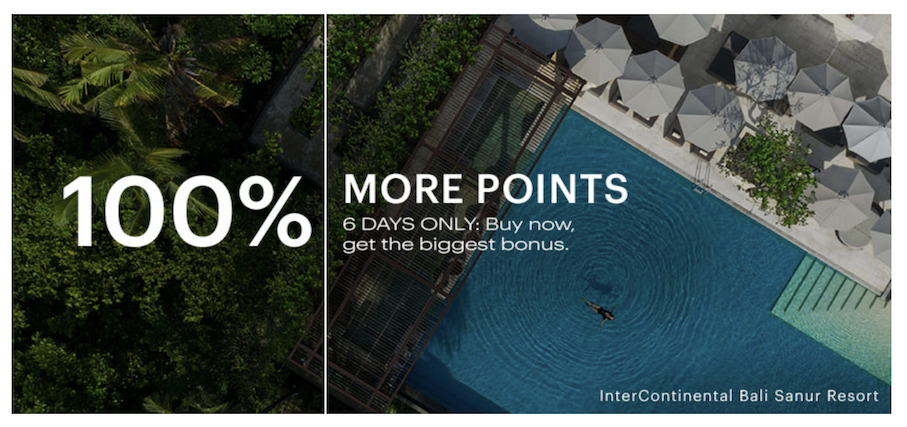 IHGで恒例のポイント購入セールがスタートしました。今回は最大100%がボーナス加算となってます。同じ価格で倍のポイント数が購入できるということで実質的には50%オフになるという計算になりますね。無料宿泊用にポイントを貯めている方には朗報になる一方で円安でポイント単価も気になるところです。以下で確認していきたいと思います。