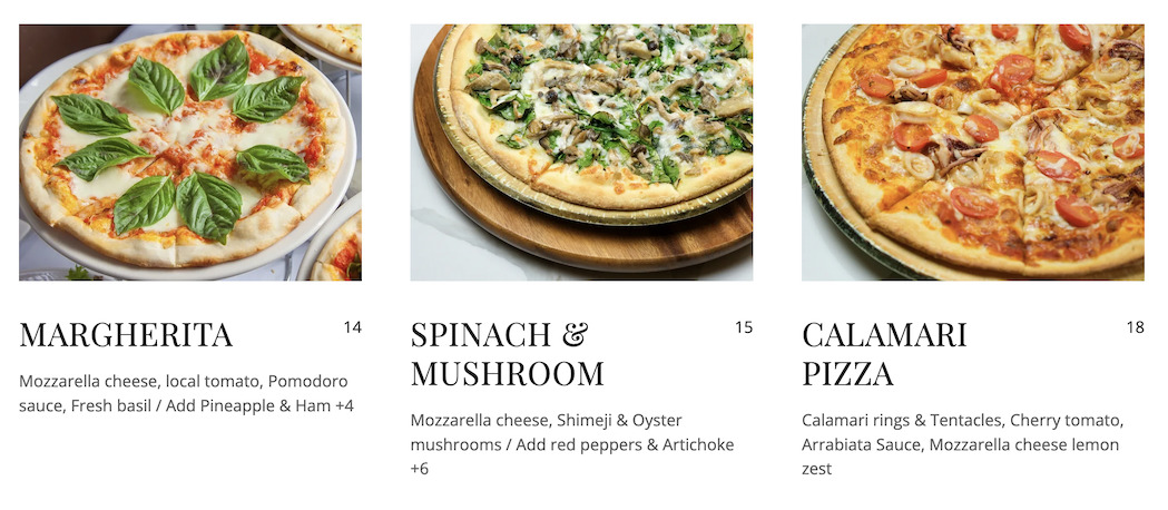 メニュー数としても、アペタイザー&メインが16種類ほど、ピザが4種類ほどあります。ハッピーアワーというと、メニュー数が少ないことが多いのですが、こちらは品数豊富となっています。迷ってしまいます。