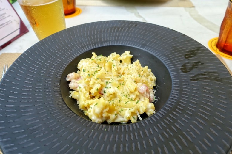 フードとしては2品注文しました。こちらは「CARBONETTI」。いわゆるカルボナーラですね。リゾットのようなショートパスタになっていました。濃厚なベーコンとチーズとあいまって、お酒に合う一品。