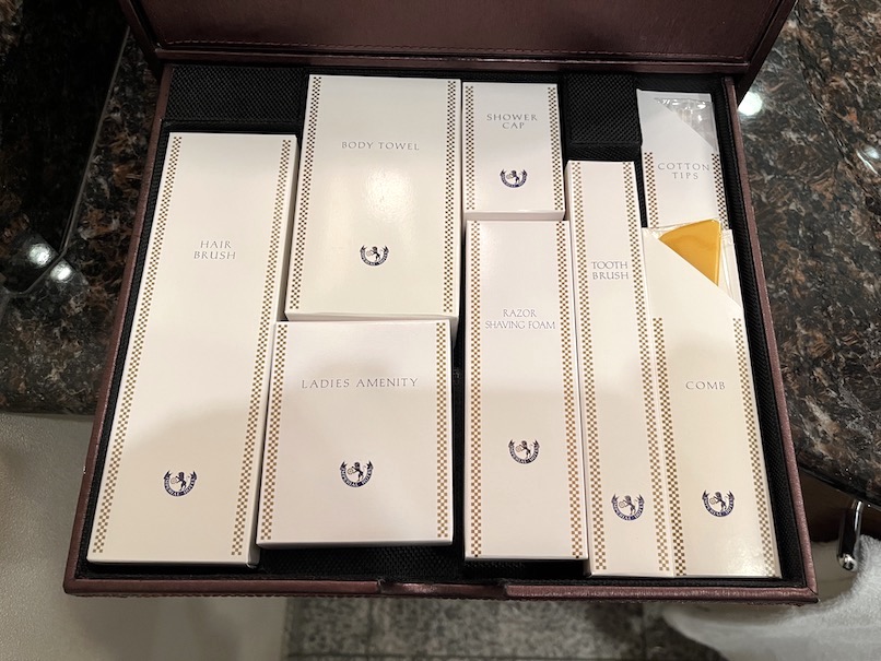 その他、歯ブラシやヘアブラシ、コームといった諸々は帝国ホテルオリジナルのアメニティーとなっていました。全て箱入りでさすがにちゃんとしています。