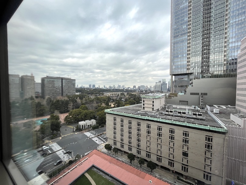 眺望はこんな感じの「日比谷公園ビュー」となっていました。真正面というわけではありませんが、窓から公園の緑を楽しめるというのは嬉しいですね。