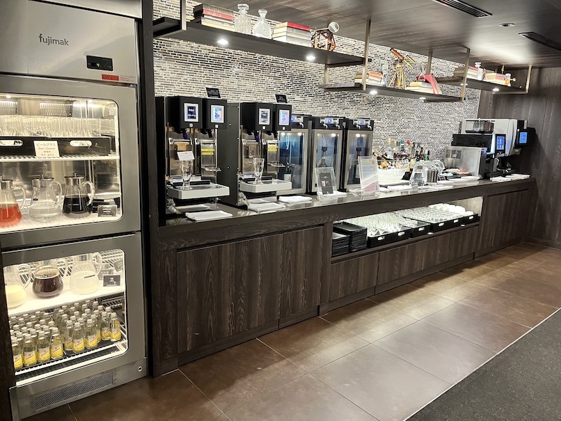 「JALサクララウンジ スカイビュー」もドリンクはビュッフェ形式になっています。品揃えは4階と同様で、ソフトドリンクもアルコールも充実した品揃えになっています。