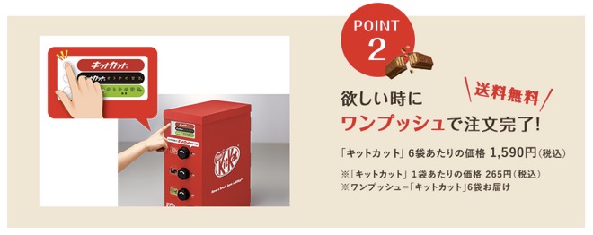 アマゾンの「ダッシュボタン」をご存知の方は、それをイメージしてもらえるとわかり易いと思います。それの、キットカット版です。