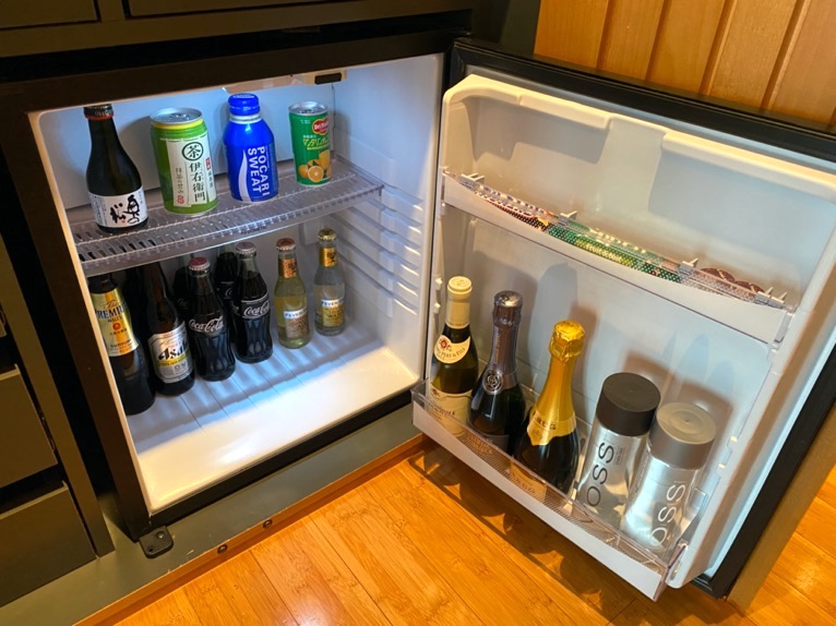 続いては、ミニバーをご紹介します。ミニバーはこちらのようなキャビネット内に収納されています。