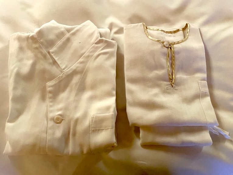 若干デザインが異なるのも面白いところです。どちらも、表面がつるつるで、肌触り抜群のとても上質なものでした。着心地抜群です。