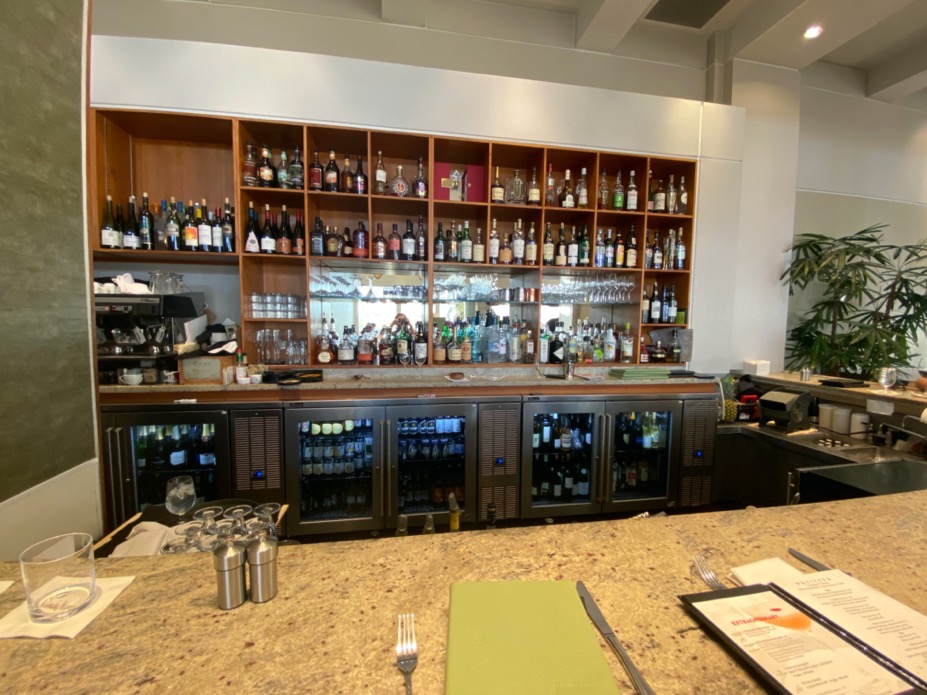 レセプションで受付をすると、5時以降の入店でハッピーアワーを利用する場合はカウンター席のみという案内があり、カウンター席を利用することになりました。
