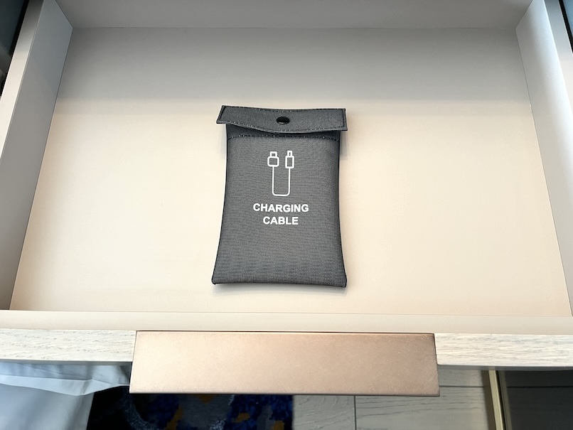 引き出しの中には充電ケーブルも用意されていました。親切な心遣いですね。