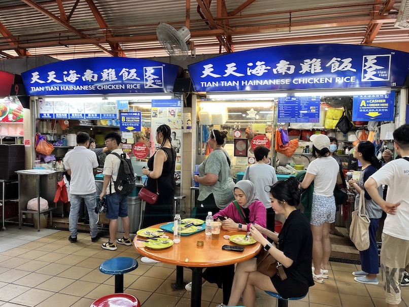 チキンライスの名店でお店の前にはいつも長い行列ができています。一番長い行列のお店を探せばそこがきっと「天天海南鶏飯」です。