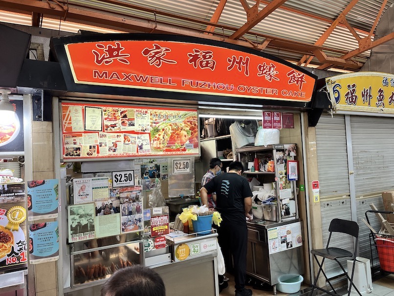 「洪家福州蠣餅(Maxwell Fuzhou Oyster Cake)」はオイスターケーキの老舗です。オイスターケーキというのはシンガポールで古くから愛されているスナックです。