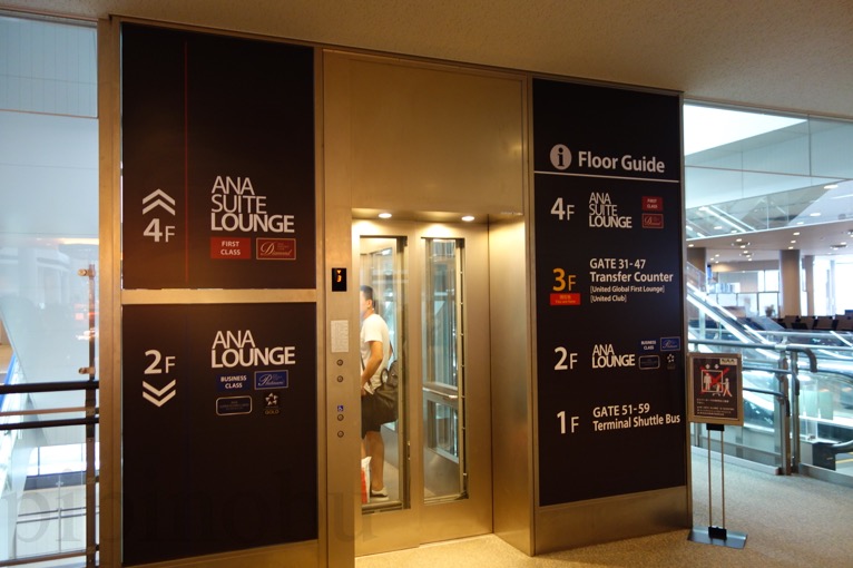 現在位置は3階なのですが、目指す「ANAラウンジ」は2階ということで、エレベーターで下に向かいます(エスカレーターもあり)。
