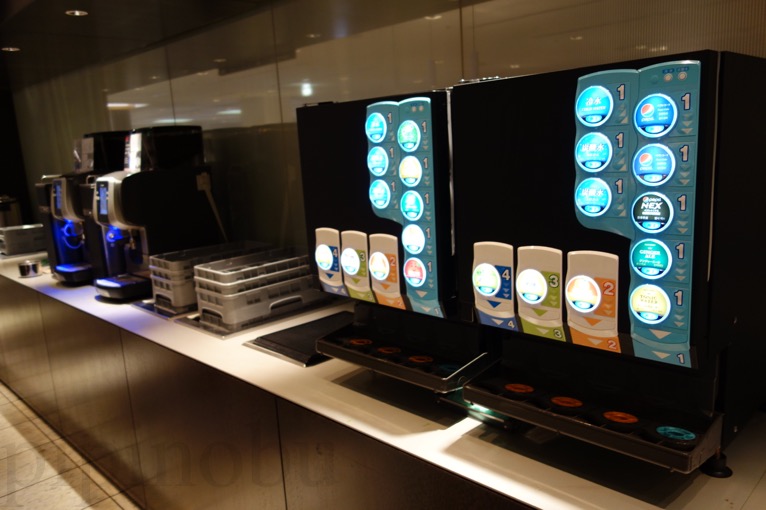 こちらの写真はソフトドリンクですね。ソフトドリンクは、コーラやオレンジジュースなどのベンディングマシーンが用意されています。