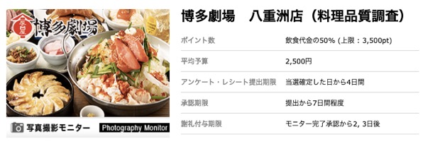 モニター案件というのは、モニターとしてレストランなどのサービスを利用することで、利用金額をポイントバックしてもえるというものです。