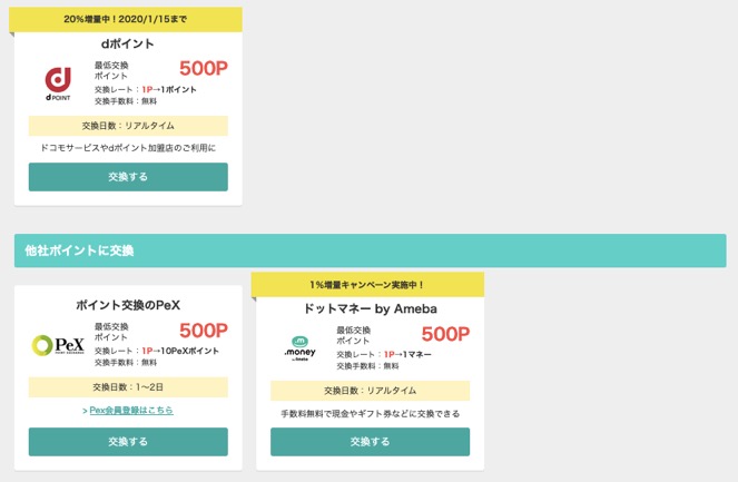 獲得したポイントは、電子マネーや他社ポイントに交換することができますので、好きなように活用することができます。