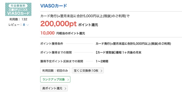また、年会費無料の「エポスカード」や「VIASOカード」も1万円分のポイントを突破しており、お得な水準になっています。