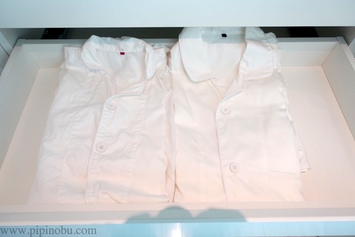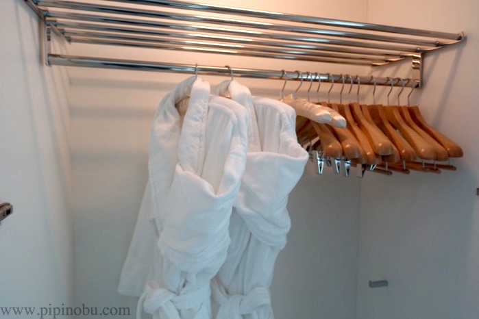 隣のクローゼットには、バスローブの用意もあります。ちゃんと2名分ありますね。
