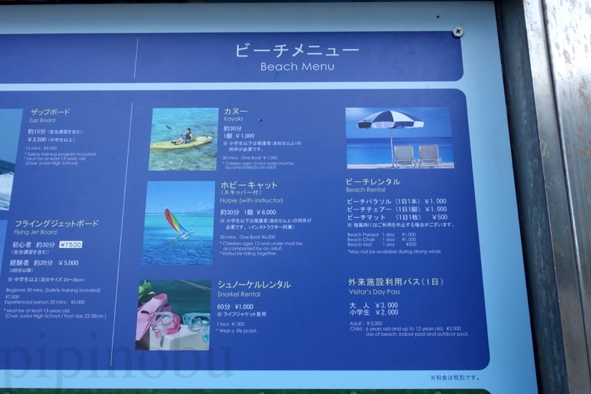 ビーチアクティビティとしては、定番のジェットスキーやバナナボートから、最新のフライングジェットボードまで、様々なものが用意されています。