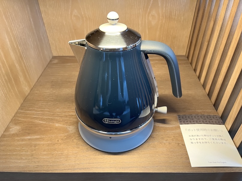 こちらの客室にはビジネスデスクはありませんので、こちらで食事をしたり、作業をしたりという形になりますね。テーブル周りには電源も配置されていて使いやすそうです。