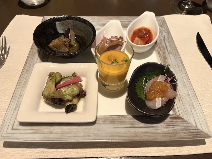 そんなこんなで、まずはシャンパンで乾杯です。お酒の弱い妻はモクテルから「スプリング ブロッサム」をオーダーしていました。どちらも美味しくて幸せです。
