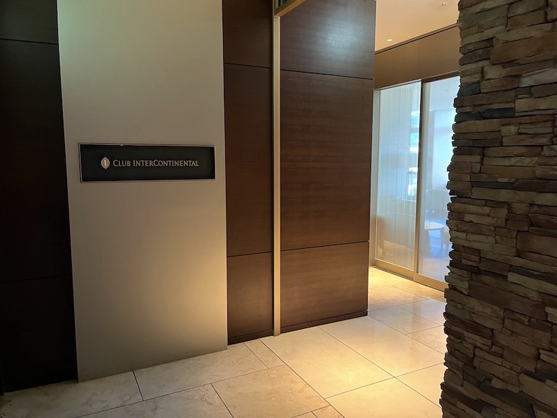 クラブラウンジのエントランスはこんな感じです。「CLUB INTERCONTINENTAL」と書かれた看板が目印です。