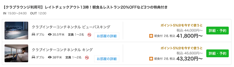私が利用した日程では、宿泊料金は4万円台前半となっていました。