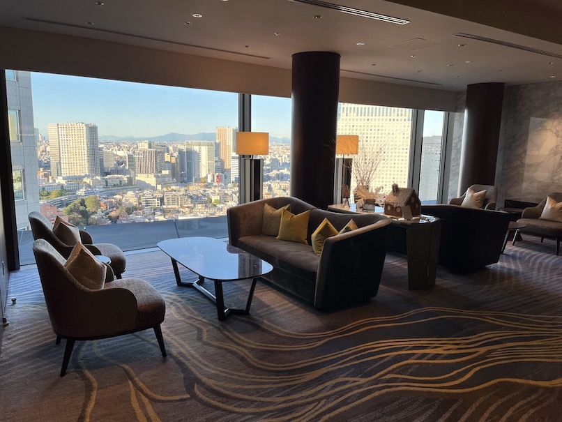 また、レセプションの脇にはソファー席が用意されています。一面が大きな窓になっており、高層階ならではの眺望を楽しめるようになっています。落ち着いた良い雰囲気ですね。