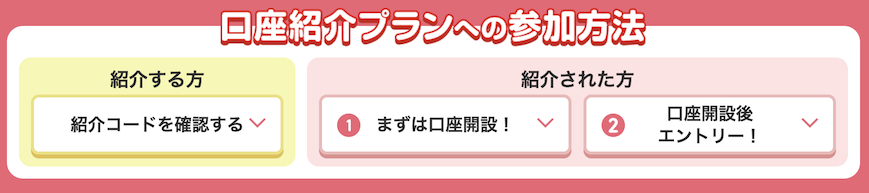 紹介といっても難しいことはありません。口座開設後に特設ページにエントリーの上で「紹介コード」を入力するだけです。