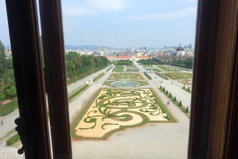 また、ベルヴェデーレ宮殿自体が高台に位置しているため、窓からは、「庭園」越しにウィーンの街並みを一望することができます。