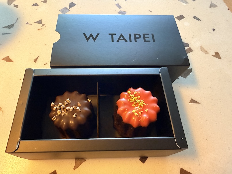 2026年1月に再訪したところウェルカムギフトはチョコレートコーティングされたカヌレになっていました。個人的にはグレードアップしたように感じました。